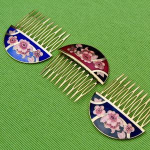 1970s Cloisonné Enamel Hair Combs & Brooches