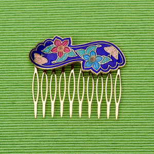 Cloisonné Two Butterflies and One Rose Hair Comb