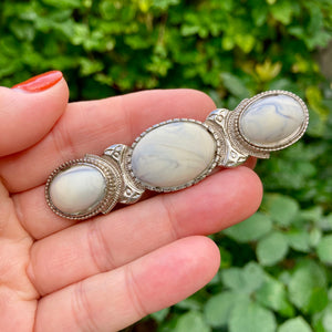 Czech Glass White Blue and Orange Twist Brooches